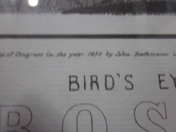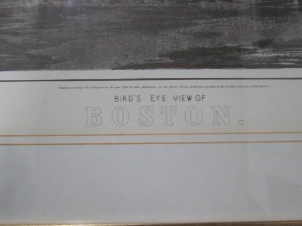 c.1850 Antique "Birds Eye View of Boston" Etching, 28 inches x 36 1/2 inches