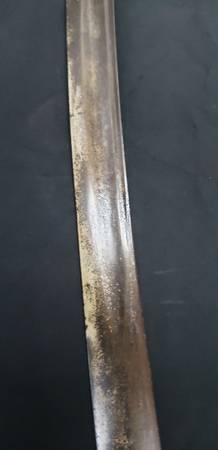 Existing leather grip shows the waring of the original leather, however it is wrapped with the original brass wire. Both Ricasso's are unmarked. The blade shows stains on both sides. Front of hand guard shows remains of silver paint from the GAR.