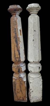 This pair of octogon newel posts is a perfect addition to any decor as they bring a unique charm to your space. The intricate details and original antique features make them a rare find for any architectural enthusiast.