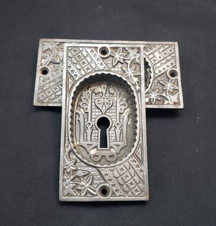 We've restored these plates by removing all existing paint/rust, wire wheeling and cleaning. Made of cast iron in the Victorian style from Eastlake. Both are in excellent condition.