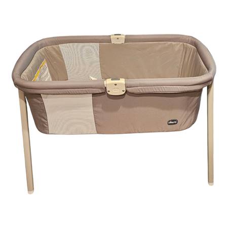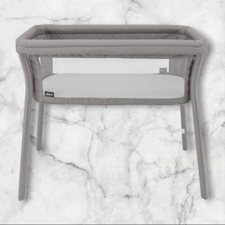 Sturdy metal legs snap on in seconds for easy setup. Disassembly is just as simple, and the bassinet folds flat for compact