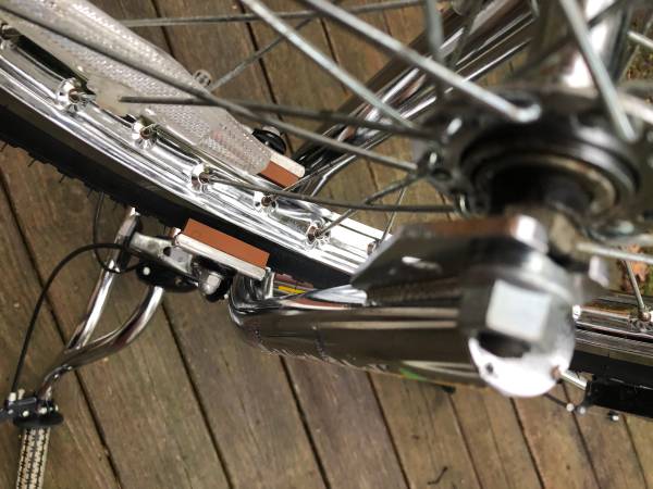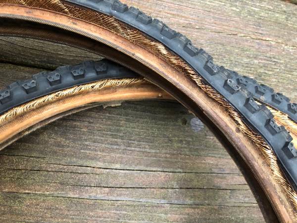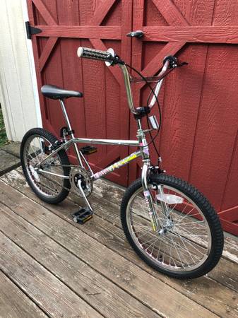 All original save for new tires and tubes but will come with original tires for display purposes only. The gumwall sides are too decayed to be safely ridden. Chrome is immaculate. Decals have a few small knicks but otherwise in great shape and great color.