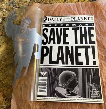 check the pictures carefully The plastic shell has creases but not the paper comic As is