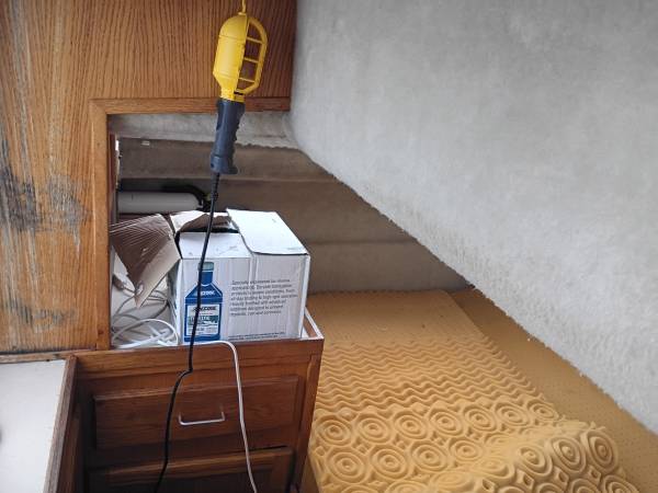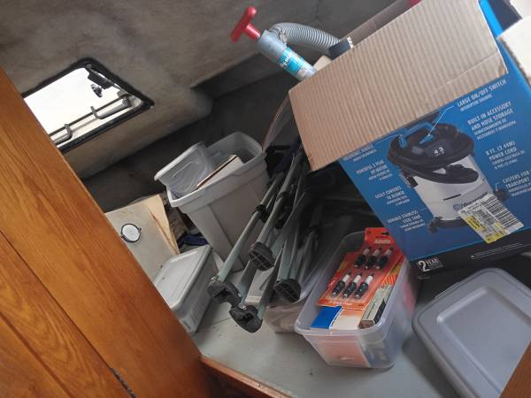 DRY Bilge: Photos confirm the bilge is clean and dry—a rare find on an older boat and the best sign of a healthy hull/deck joint.