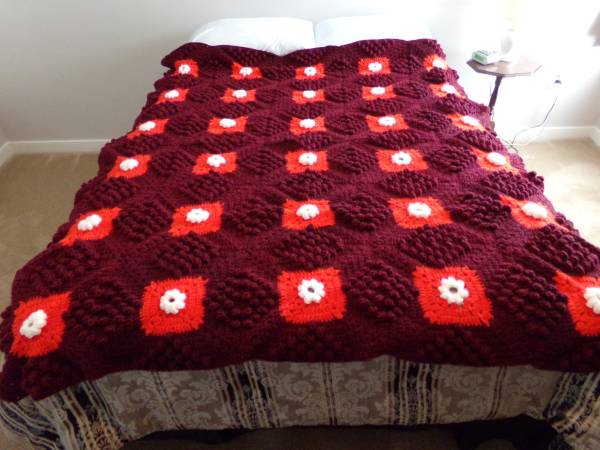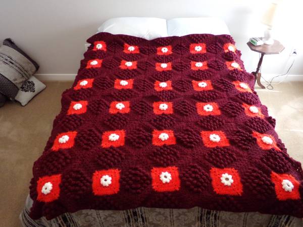 Virginia Tech Hand Crocheted Afghan in Vtech Colors. Brand New and never used. The Blanket measures 5' x 6' and will cover up a Full Size Bed and close to a Queen size bed. Excellent Christmas or graduation gift for a student at Vtech or someone who just likes the college. It gets cold in Blacksburg, so this is the perfect gift
