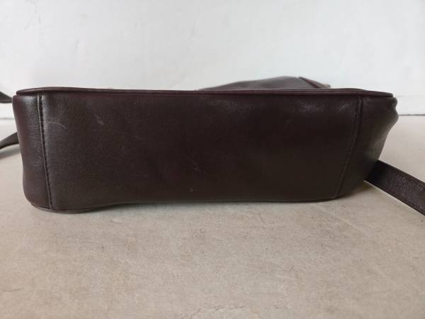 The vintage Entienne Aigner brown leather shoulder bag is a classic piece with a solid rectangular shape and gold hardware accents. This double compartment bag features a zip closure, medium size, and a comfortable shoulder strap for easy carrying. The brown leather exterior and lining add a touch of elegance to this timeless accessory. Perfect for women who appreciate vintage style and quality craftsmanship, this Aigner handbag exudes a timeless charm.