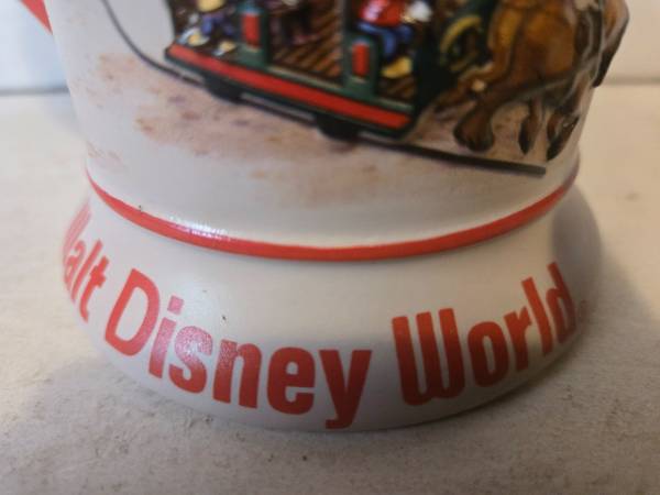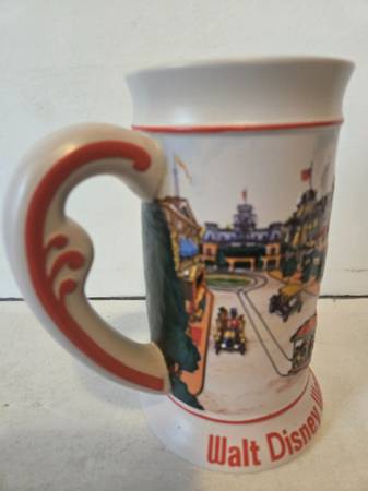This pre-owned Walt Disney World Main Street USA tall ceramic beer stein cup souvenir is a highly collectible item featuring the iconic Disney brand. Made in Brazil during the 1980s, this mug is a nostalgic piece of Disneyana that would make a great addition to any Disney enthusiast's collection. Perfect for enjoying a beverage or displaying as a cherished keepsake of the beloved Disney franchise.