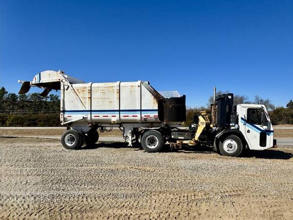 It consists of an automated Rapid Rail arm mounted on a truck tractor, and detachable, semi-trailer packer bodies. This arrangement gives the STARR a 42-foot curb-to-curb turning radius, allowing it to easily maneuver around cul-de-sacs, alleys and tight corners without risky backing. This truck and trailer combination is in excellent condition! It is super easy to drive with a turn radius that is truly amazing! It is great for city, alley, and tight fit areas.