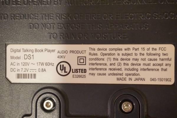 Digital Talking Book Player DS1 in good condition, working unit. Designed for the blind with braille buttons, Library of Congress National Service for the Blind and Disabled Audio Player. Made in...