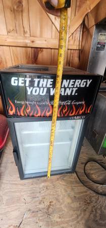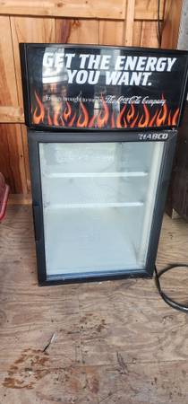 Selling a countertop refrigerator with Coca-Cola decals on it. It is in good working condition. Needs to be cleaned up on the outside a little from being in the shed for awhile. Just tested and it does get drinks very cold. Would make a great frig for Mancave or Workshop.