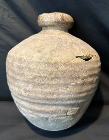 This is an Ancient Phoenician/Ottoman Original Olive Oil Jug. It holds historical significance as an antique piece from the region, showcasing the craftsmanship and cultural influence of the time. This olive oil is a unique artifact that reflects the artistry and tradition of the Middle Eastern civilization.