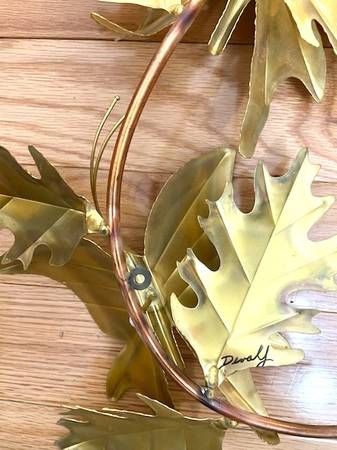 Mixed Metal Butterflies & Leaves Wall Art. Brass & Copper. Handmade & signed. Very good condition. Approx. 26" L x13" W x 4.5" D