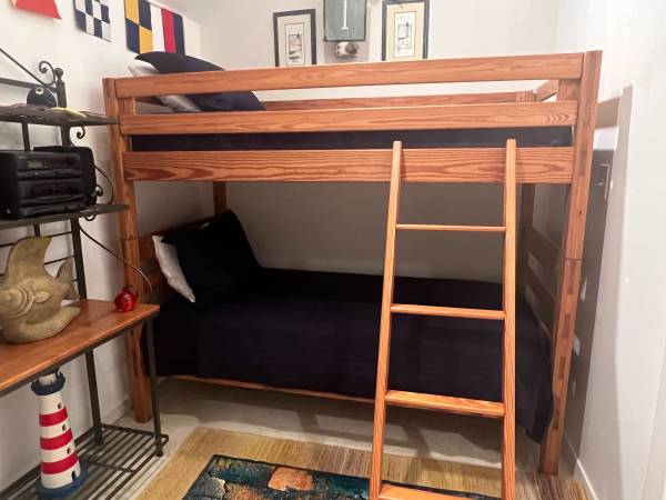 Can be used as bunks or as twin beds. Includes ladder, safety rail for top bunk, platforms, and mattresses. No box spring needed. Smoke free home. Disassembled and ready for you! Bedding not included.