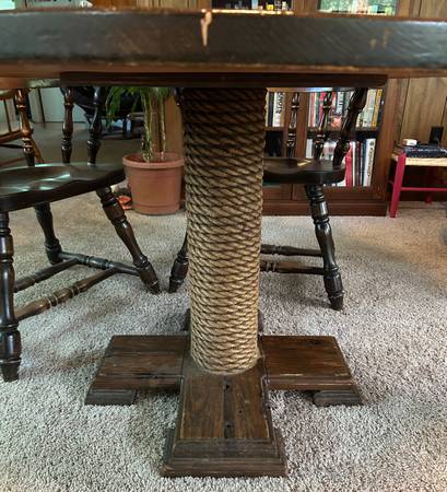 This 5-seat nautical-style dining table and captain's chairs were purchased from the Skilligalee Restaurant—a Richmond institution for more than 40 years—when it closed in 2013.