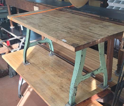 We created this table with reclaimed butcher block for the top and attached it to an industrial cast iron base.