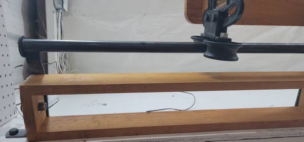 This rolling ladder has it's top and bottom hardware intact - but does need the top railing for sliding. There are a total of 10 rungs with a top round bar for safety. Each rung measures 3 1/2" deep and 16 1/2" across. The side frames are 3" wide.