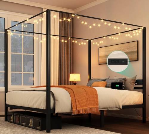 This Modern Canopy Bed Frame has clean lines for a timeless look.