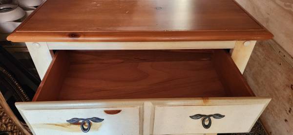 Nice used bedroom set in good condition. Dresser with large mirror, Chest, Nightstand, and Bed with head and footboard.