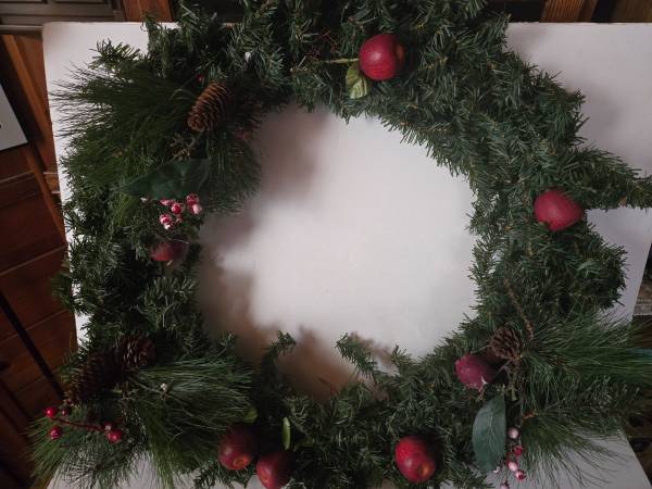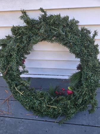 Large 28" diameter Christmas Wreath. There are no lights but it can be re-decorated or just add a string of lights around it. $15 OBO. Cash Only