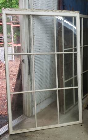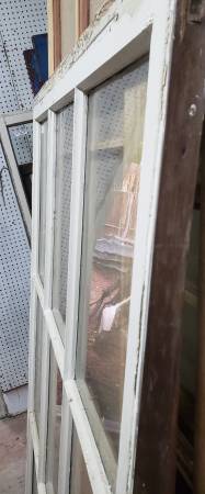 This window has a fantastic design with 9 large panes. Each pane is very large measuring 13 5/8" wide by 21 3/8" tall. The early to mid 1800s glass is quite unique as it has waves and folds within the glass. The wood mullions are all in good shape as well as the actual frame. This would be a great replacement or revision to any storefront, business, home and more. We actually have two of these available. The other window is just slightly different in size and also listed in our store.