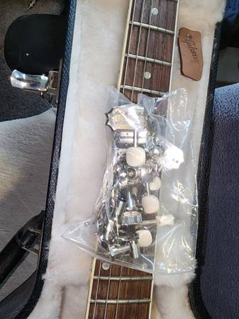 Lightly used. Kept in smoke free home. No cracks or breaks. Upgraded Gibson tuners, original tuners included. OHSC. Cash only, thanks for looking.