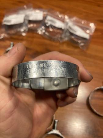 18 new Wittek hose clamps. 2 1/2” x4 2 5/16” x3 2 1/16” x4 1 3/16” x1 1 1/16” x6 All except for the 2 1/2” are date stamped “3/66” for the third quarter of 1966. Must buy all.