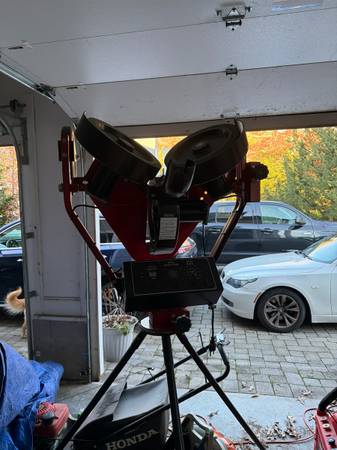 Very little use on my Rawlings 3 wheel pro line pitching machine with automatic feeder. Up to 100MPH and you control the spin rates. Set up any type of pitches. New was $5,500