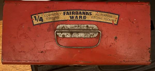 Vtg empty 1/4 Fairbanks Ward Electric Tool Kit Metal Box 12” long 4” deep 5” wide could use painting. Just normal wear, no rush, just paint scratched off of bottom mostly. Check photos.