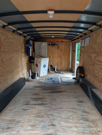 I used this trailer to haul a race car, but it can be used for anything. Its about 2900 pounds empty. It's in good shape, a few little dents and grime is all. There are tie downs for securing a car, two in the front, four in the back. Passed Virginia inspection in January, brakes and tires are in good working order. Has four wheel drum brakes, leaf springs and spring assisted ramp. Let me know if you have questions.